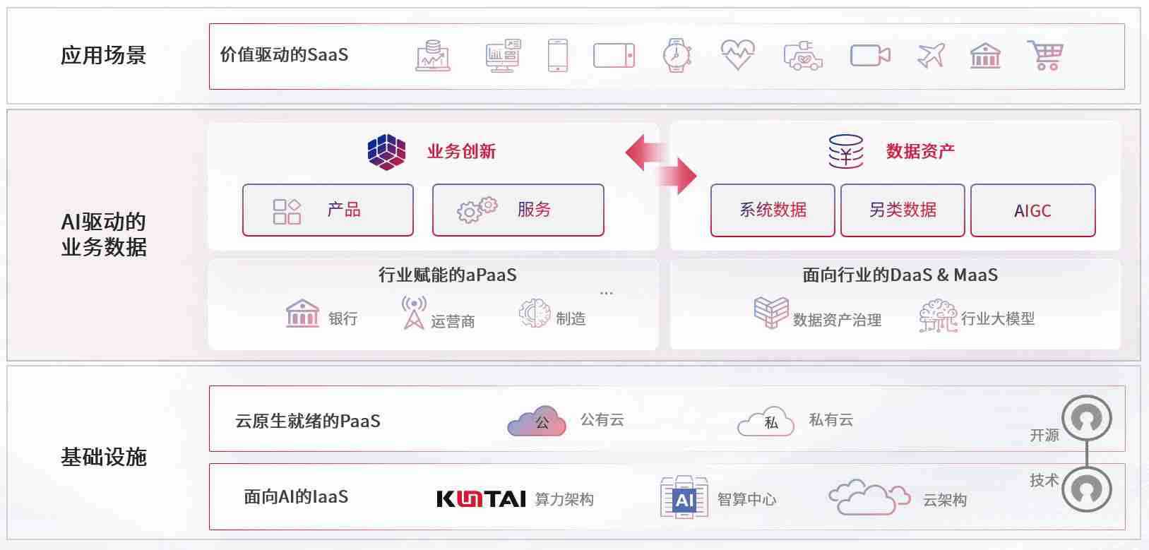 数字时代,,,围绕企业数字化转型的关键要素,,usdt游戏网数码开创性的提出数云融合战略和技术体系框架,,着力在云原生、、、数字原生、、、、AI原生和信创产业上架构产品和服务能力,,,,为处在不同数字化转型阶段的快消零售、、汽车、、、金融、、、、医疗、、、政企、、、、教育、、、运营商等行业客户提供泛在的敏捷IT能力和融合的数据驱动能力,,,,构建跨界融合创新的数字业务场景和新业务模式,,,助力企业级客户建立面向未来的核心能力和竞争优势,,,全面推动社会的数字化、、、、智能化转型升级。。。。