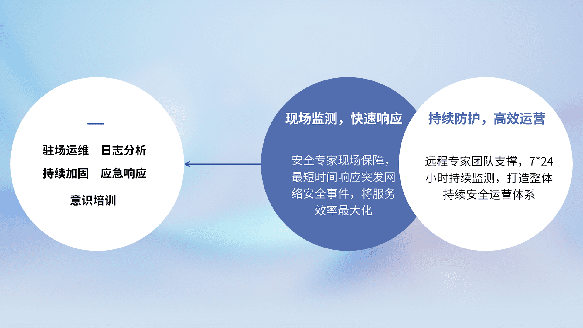 7X24小时持续监测安全事件,保持安全策略有效性,降低资产脆弱性风险,,,,精准拦截黑客攻击,,减少被黑客利用的机会,,第一时间遏制,,,,降低损失。。。